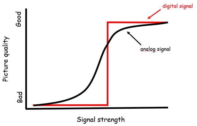 The graph below shows the picture quality for both a analog and a digital signal. Which signal do you think is